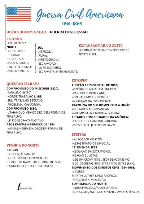 A Guerra Civil Americana (1861–1865) foi um conflito interno dos Estados Unidos que opôs o Norte (União) contra o Sul (Confederação).